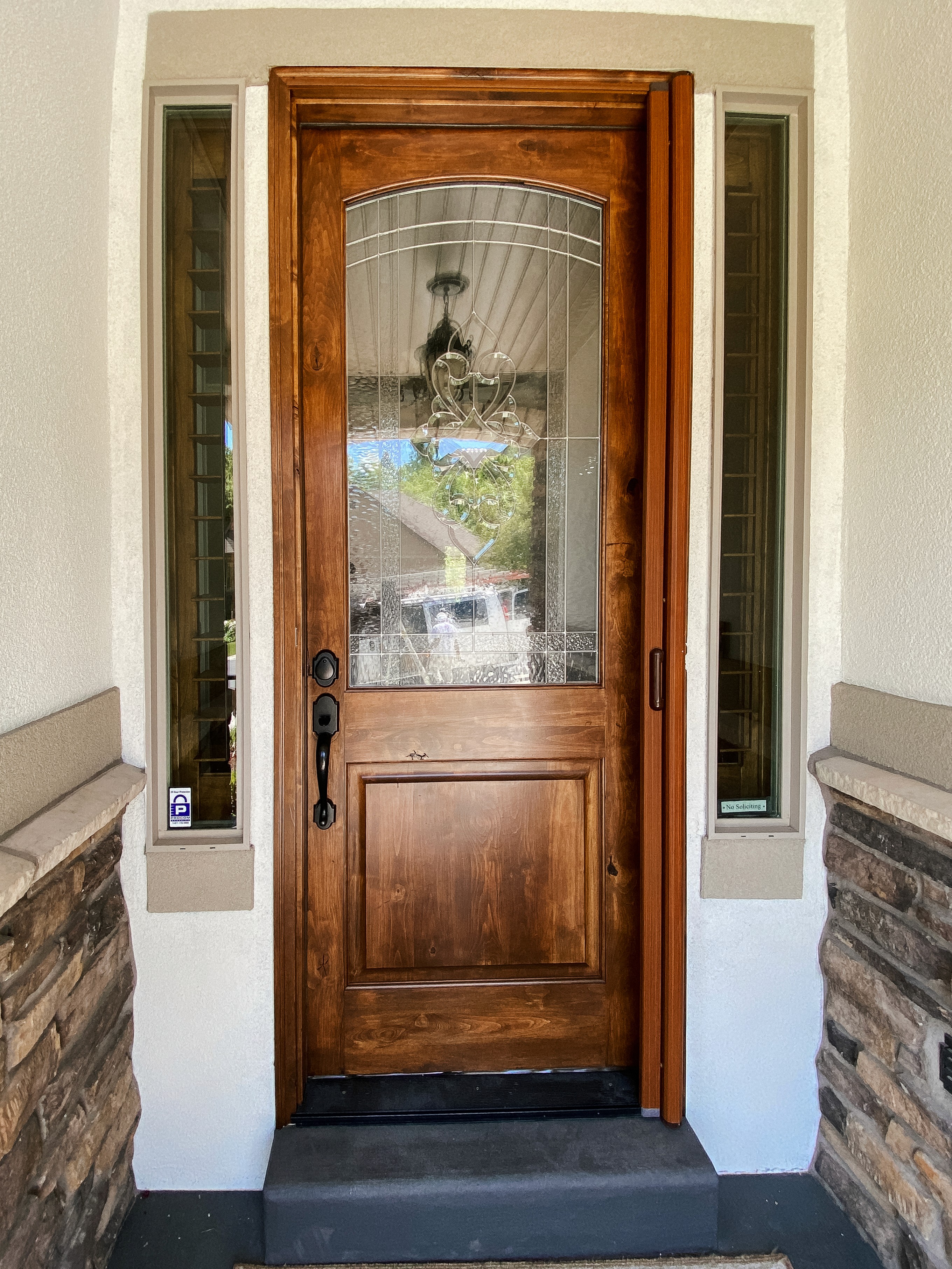 Surrounding surfaces, landscaping, and hardscaping are protected throughout the project. Stain overspray and drips are managed before they become a problem, and the site is left clean at the end of every workday.